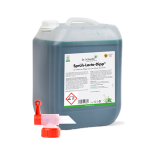 Der Strichkanal ist bis zu zwei Stunden nach dem Melken geöffnet. Nach dem Melken ist die Zitzenhaut besonders empfindlich und benötigt gezielte Pflege. Lacta-Dipp enthält Milchsäure in einer hautverträglichen Konzentration und pflegt die Zitzenhaut nach dem Melken. Gleichzeitig wird die erwünschte, positive Hautflora, die für eine gesunde und intakte Haut unerlässlich ist, durch den Zusatz eines natürlichen Prebiotikas gestärkt.